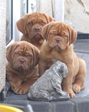 The Dogue de Bordeaux, or French Mastiff, is a new breed belonging to the AKC. They are known for their power, Molossar bodies, keen guarding instincts, and large amounts of courage, yet lack of aggressiveness.